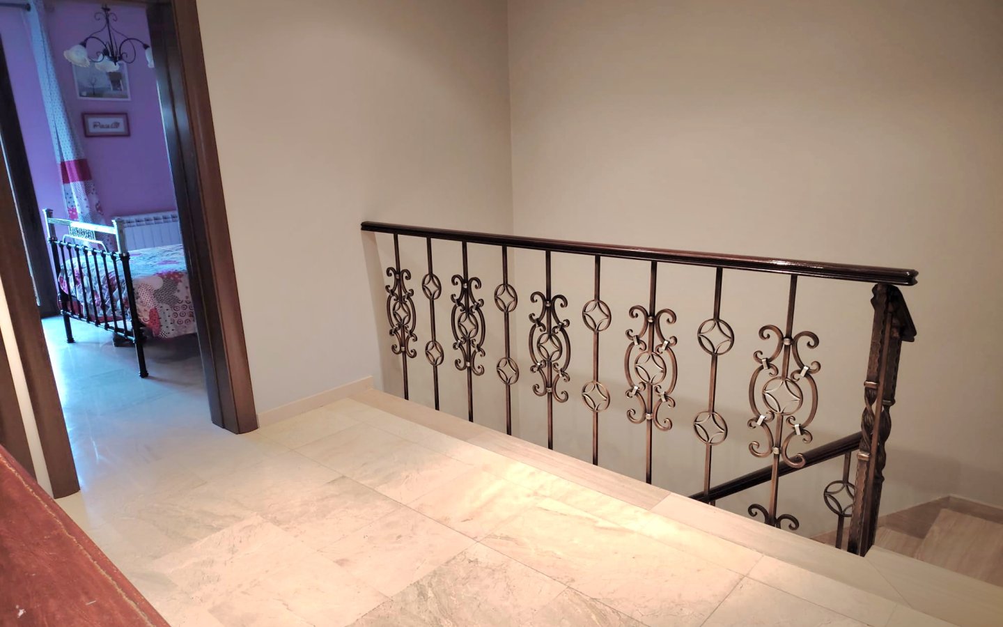 There is an entrance hall leading through two ornate doors into a large reception room. To the front there is a sitting room. Directly opposite there is a large family lounge which has a walk-in storage cupboard and with access into the modern, bright family kitchen which is fully fitted. There is access from the reception room out to the rear courtyard with traditional Andalucian tiles to the rear of this area is a modern shower room with a sink, wc and shower. A tiled staircase leads up from the courtyard to two private raised terraces where there is also a modern utility room.