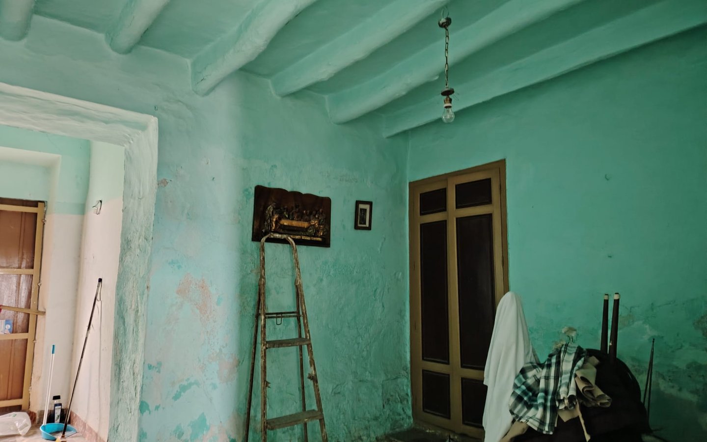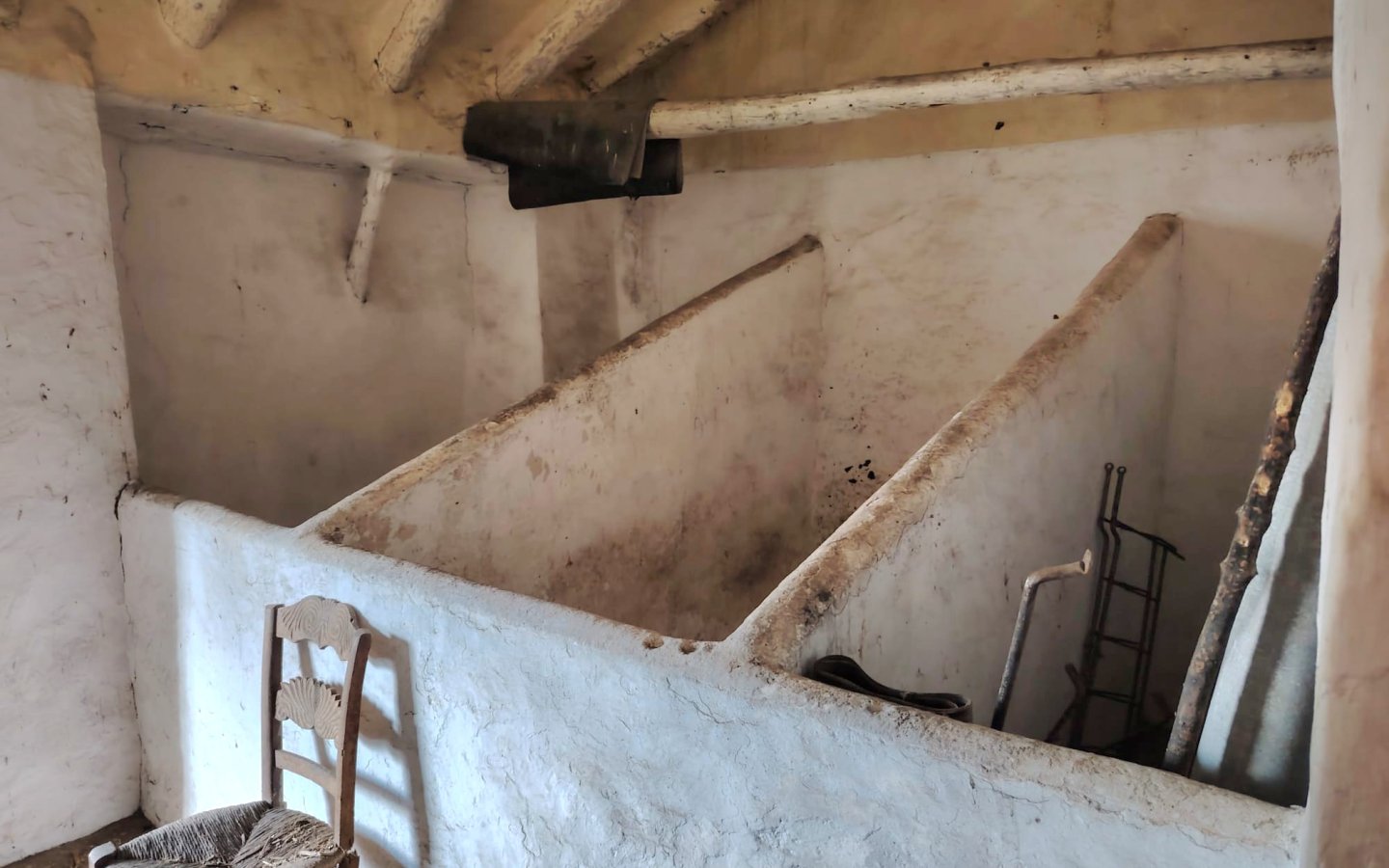 Back inside the house a staircase leads up to the first floor where there are various rustic rooms that in past years had been used to keep livestock