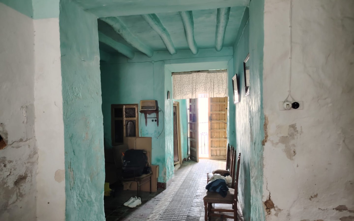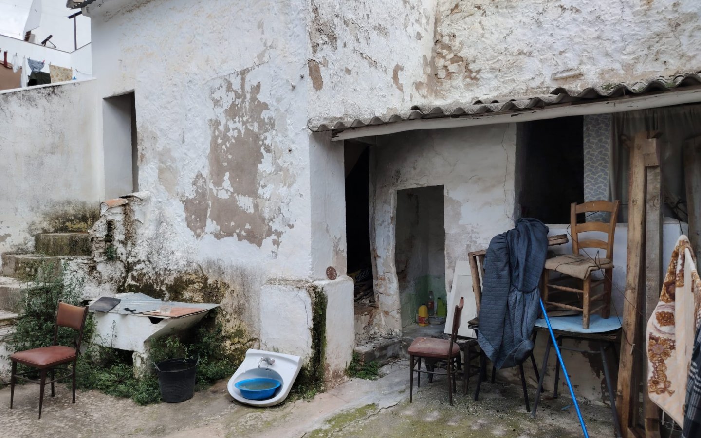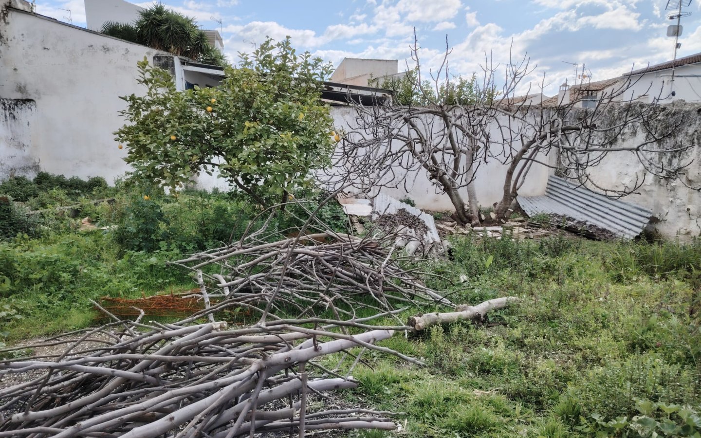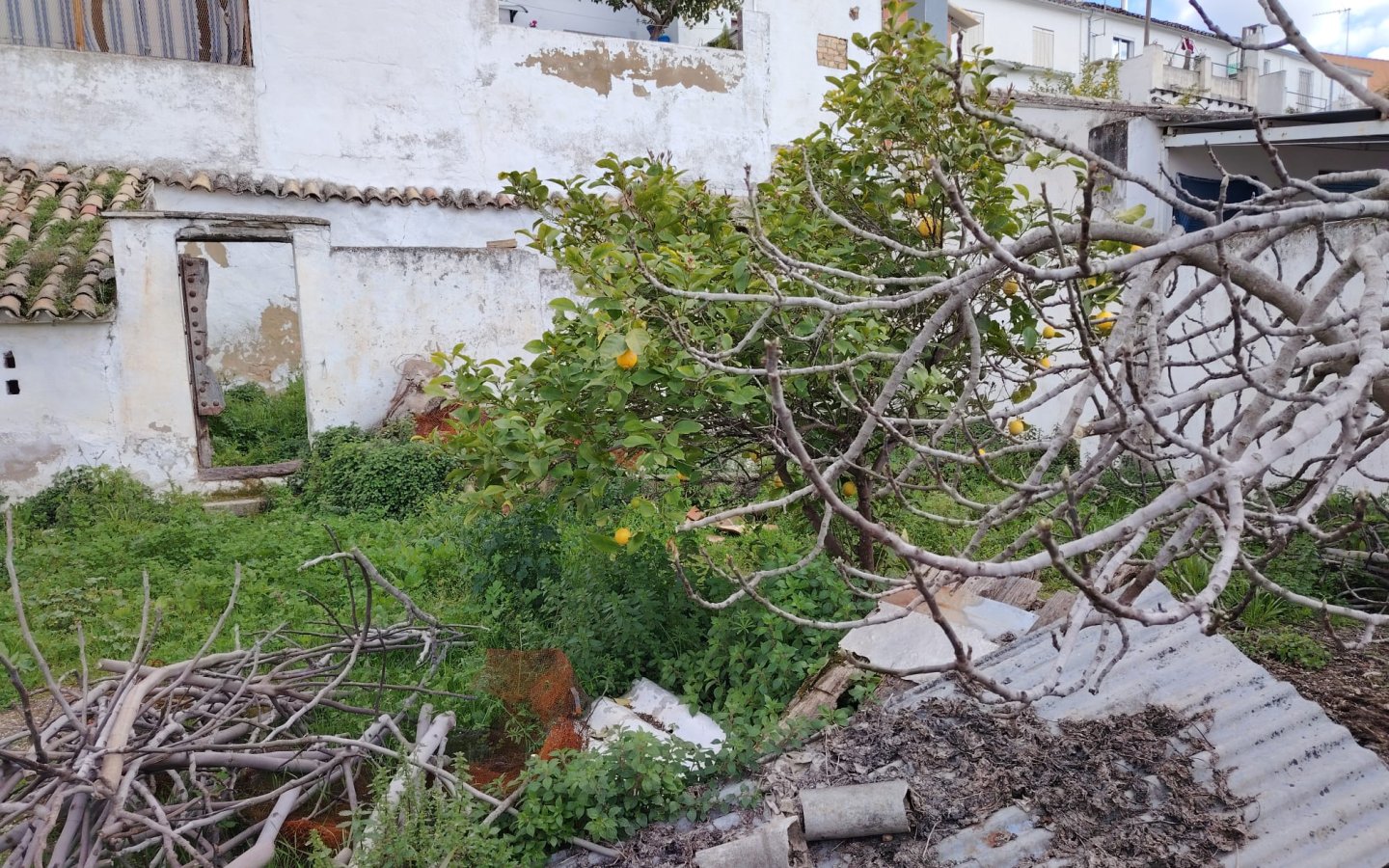 Located centrally in the popular Town of Rute less than an hour from Malaga , the house is set back from the road and has public free parking directly opposite. On entering there is a room to the right and one to the left both are front facing. There are beamed ceilings throughout and an original tiled floor from the 1930s. Further along there is then a larger room to the left, ideal as a dining room and straight ahead is where the old kitchen once was with a fireplace. There is then access to the rear courtyard which is a good size and very private. In this area there are also three brick outbuildings that would have been used in the past for animals. Steps then lead up and at the top there is a store room and access to the huge garden. This area is currently unloved and overgrown with some various fruit trees and needs to be restored; however it would be ideal to house a pool and terraces. Then to the rear a few steps takes you into another garden area with a large brick storage/animal shed.