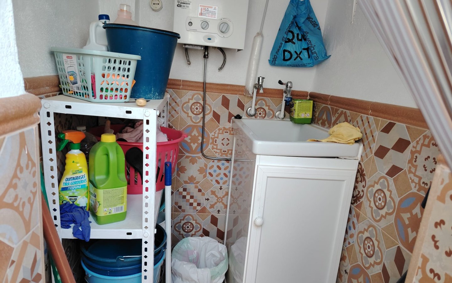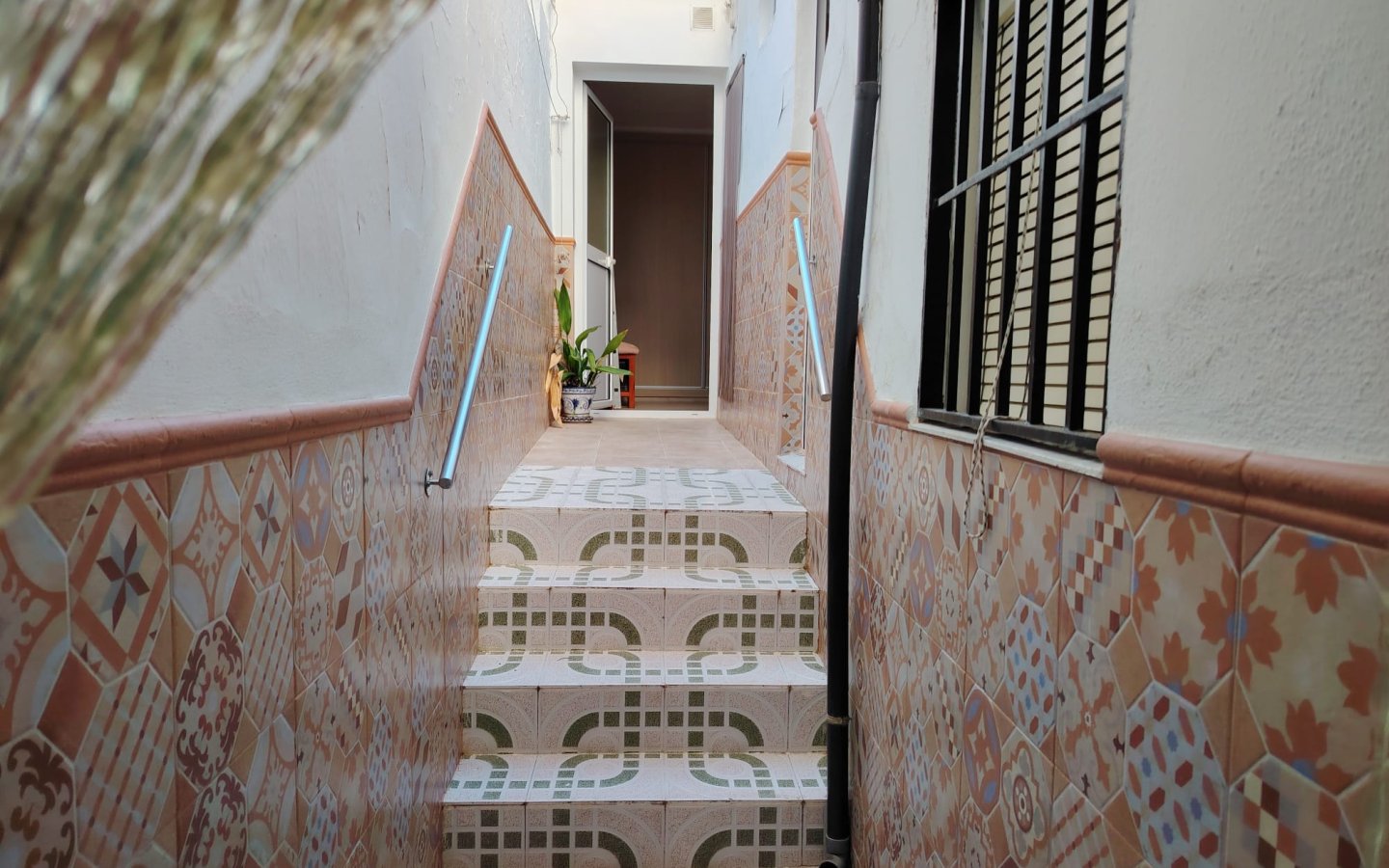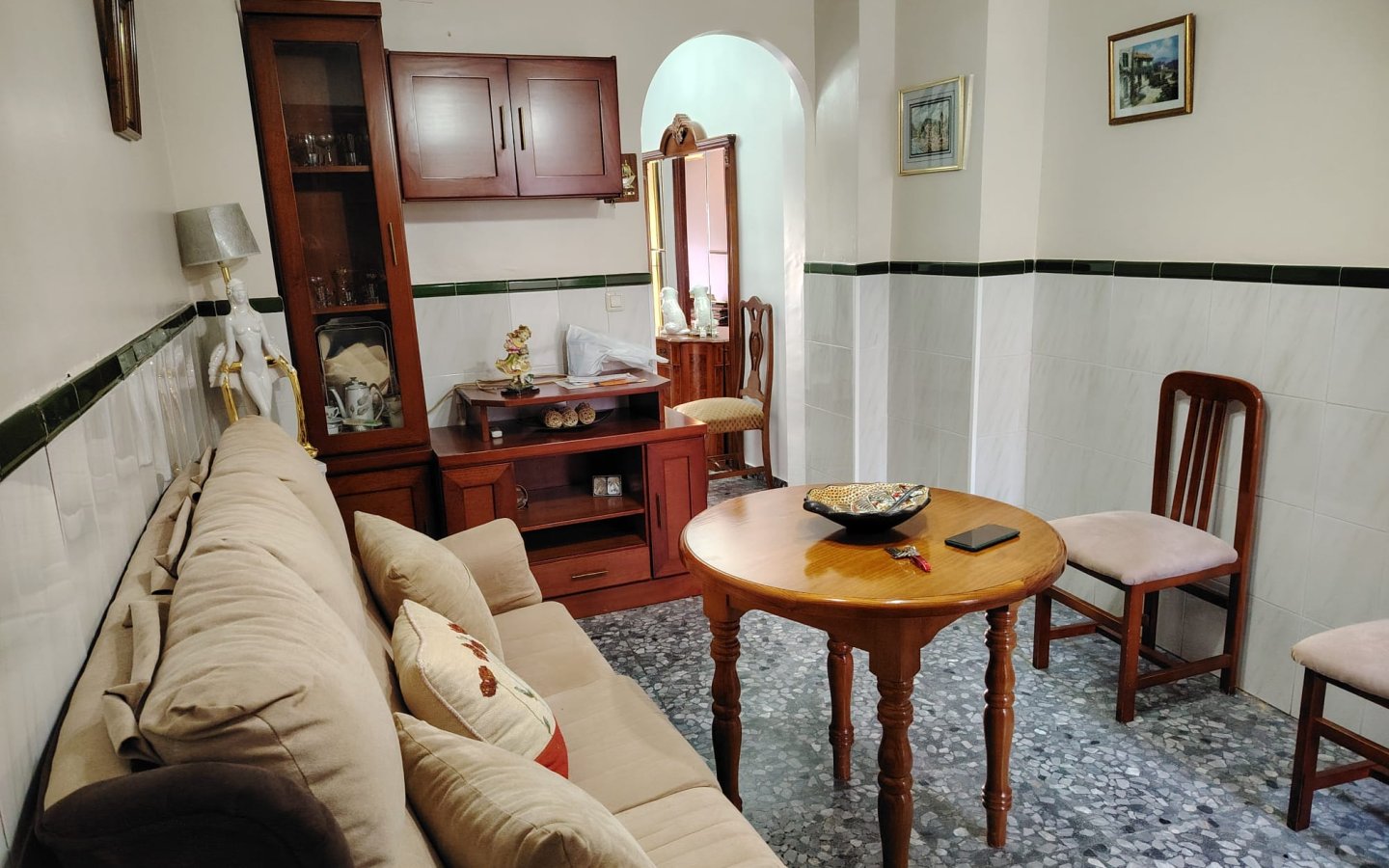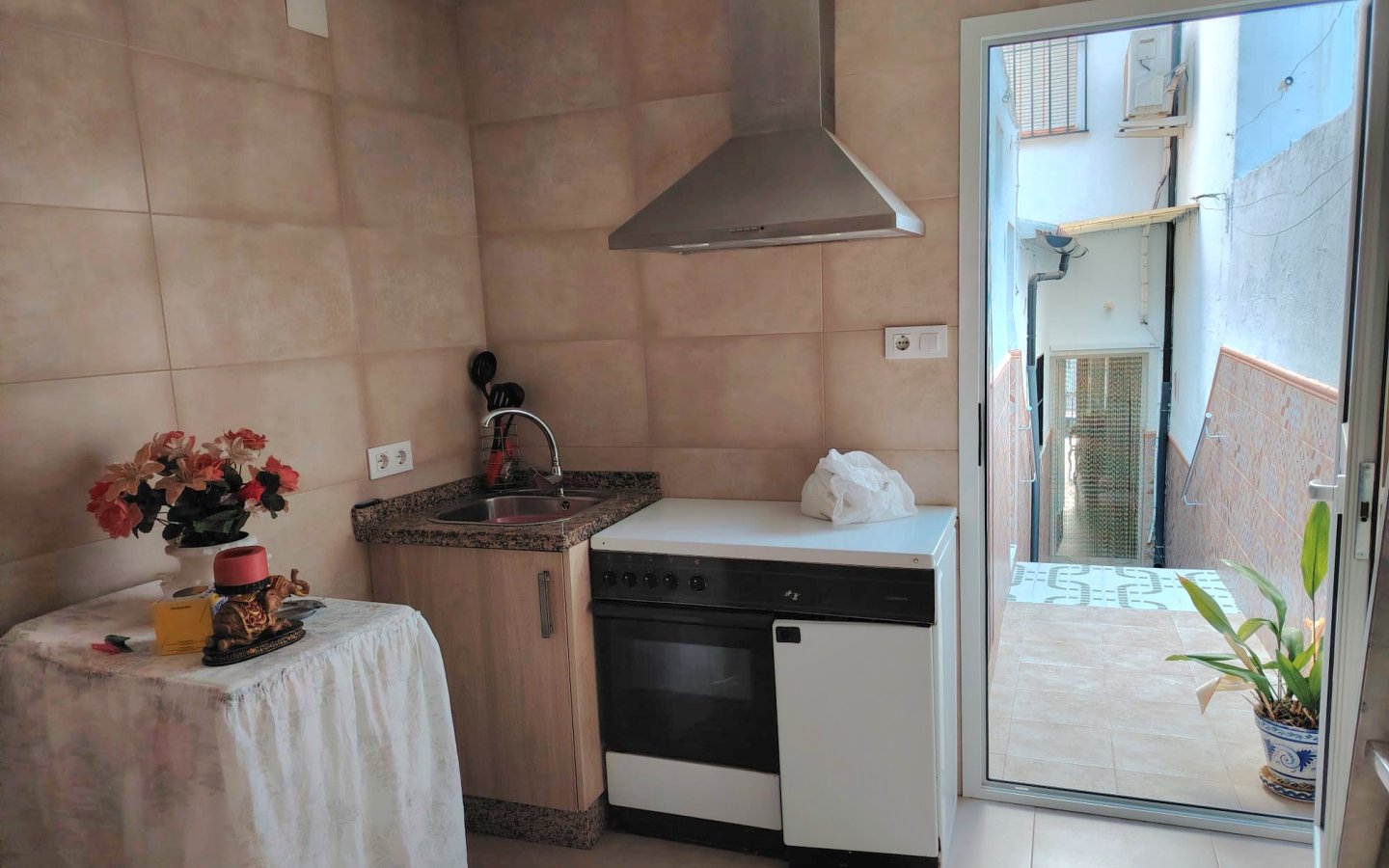 Set back from the road in a raised position in a street lined with orange trees this property is ready to move into. There is a traditional tiled entrance hall leading into a reception room. From this area there is also a room currently being used for storage which would also work as a downstairs bedroom or a sitting room. To the rear of the reception room there is a lounge/dining room with access into the kitchen. The kitchen is compact yet fully fitted with wooden units. There is access from the lounge out to the courtyard then steps lead up to a modern shower room. In this area there is also a utility room and at the end of the courtyard a large storage room/kitchen.