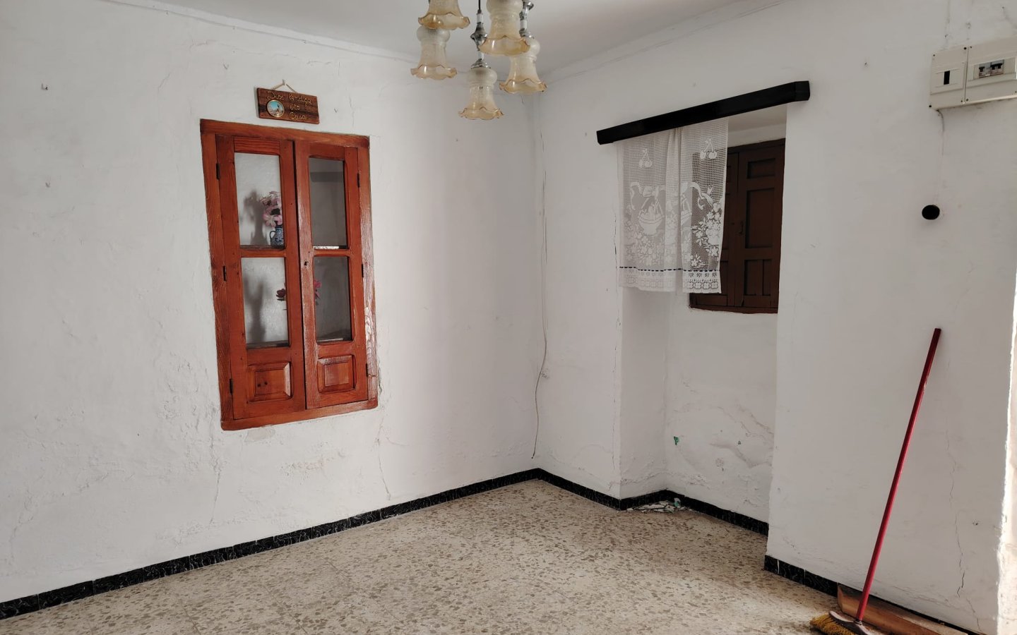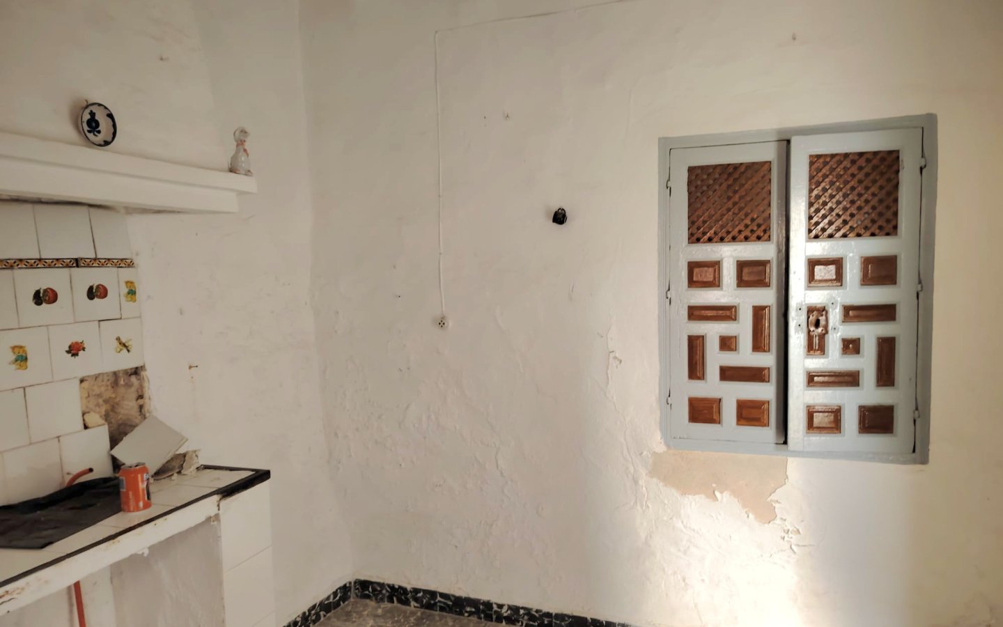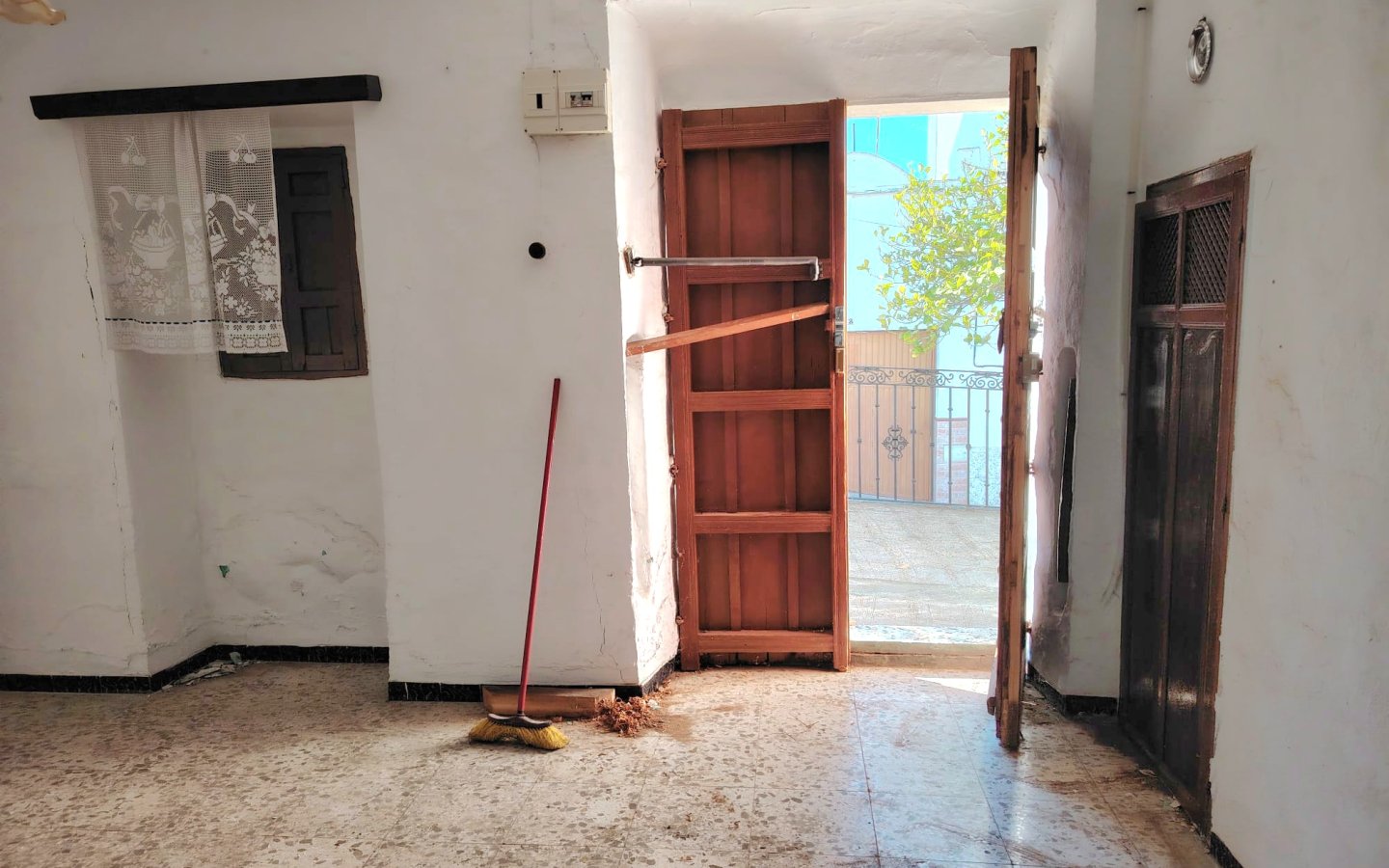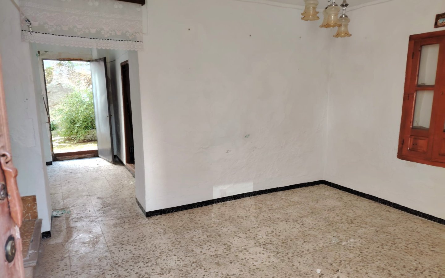 Located in a raised position with access to the side to the raised garden area which could easily be incorporated from the ground floor patio. To the front of the property there is a lovely paved area filled with orange trees which is owned and maintained by the local Town hall. On entering the houses there is a large front facing lounge with some original features including an under stair storage room. To the rear of this room a corridor takes you a large family kitchen in need of updating and modernizing with a fireplace. There is access from the corridor out to the ground floor patio this is a great size and has a quirky rock formation which when painted could be quite a feature. There is a large cave-like storage room in this area too and you can see the raised garden area which could also be easily incorporated into the patio as a raised sun terrace/garden. There is also an outside bathroom in the area again which needs updating however water and waste are there.