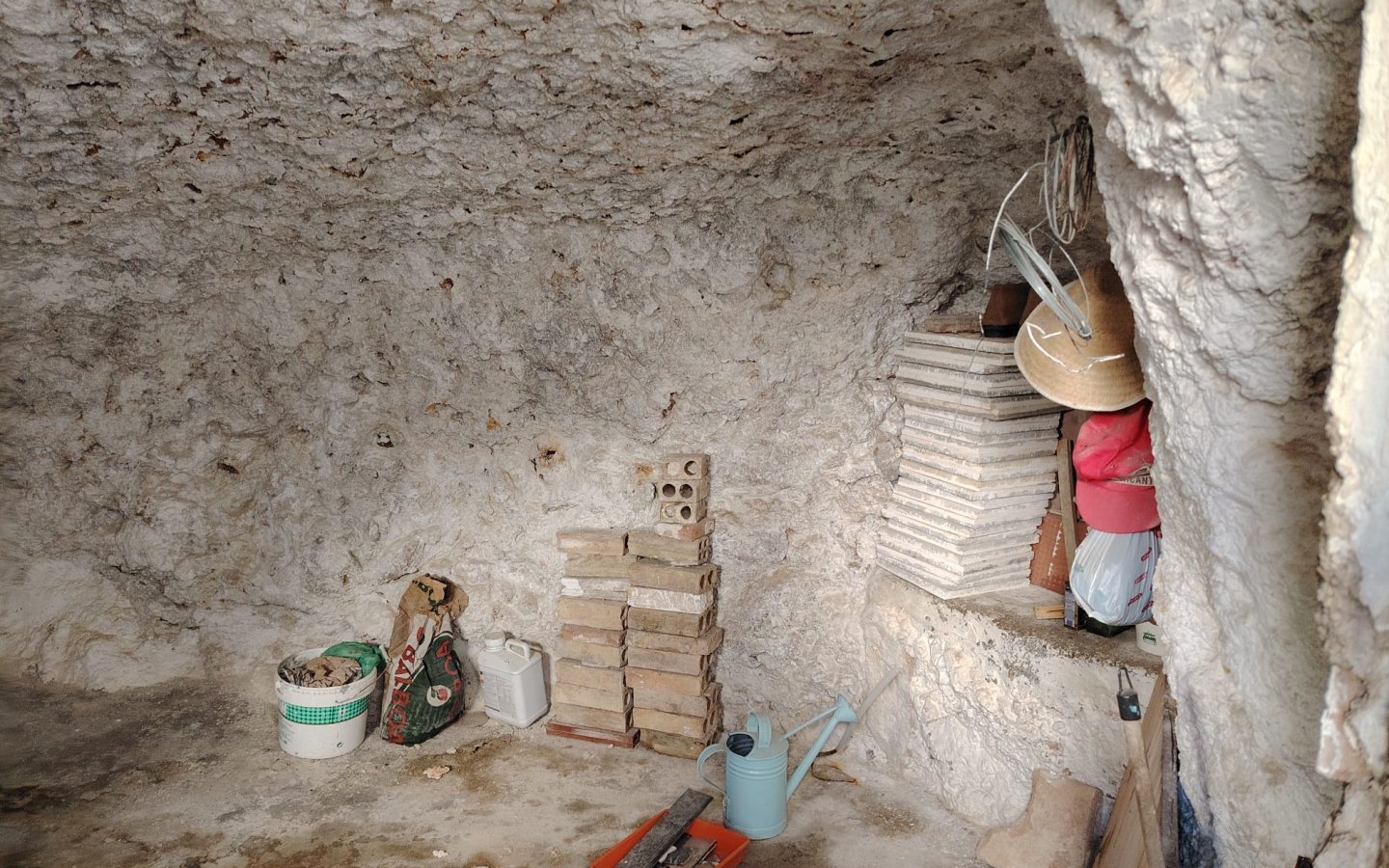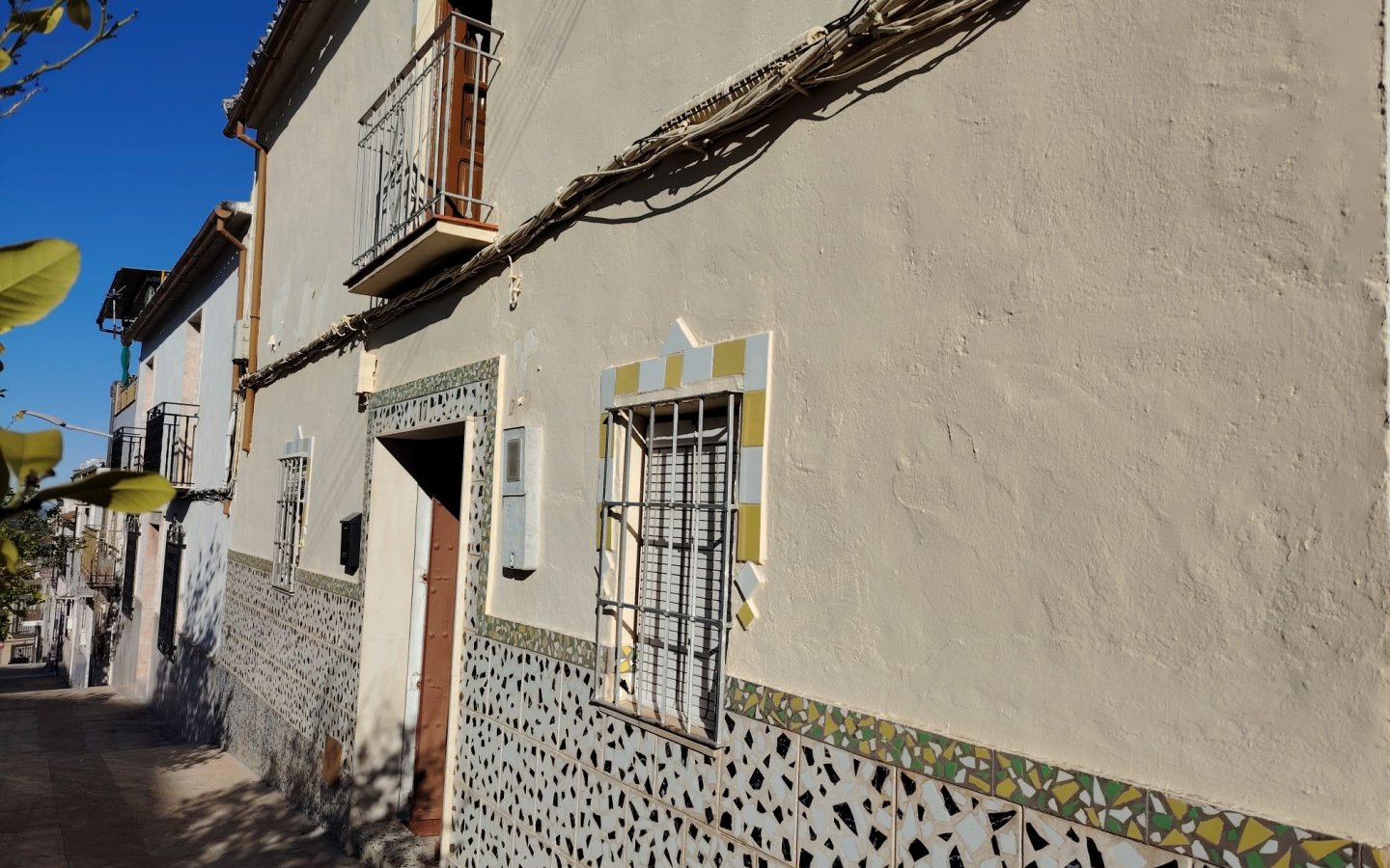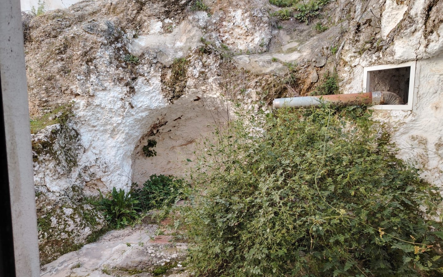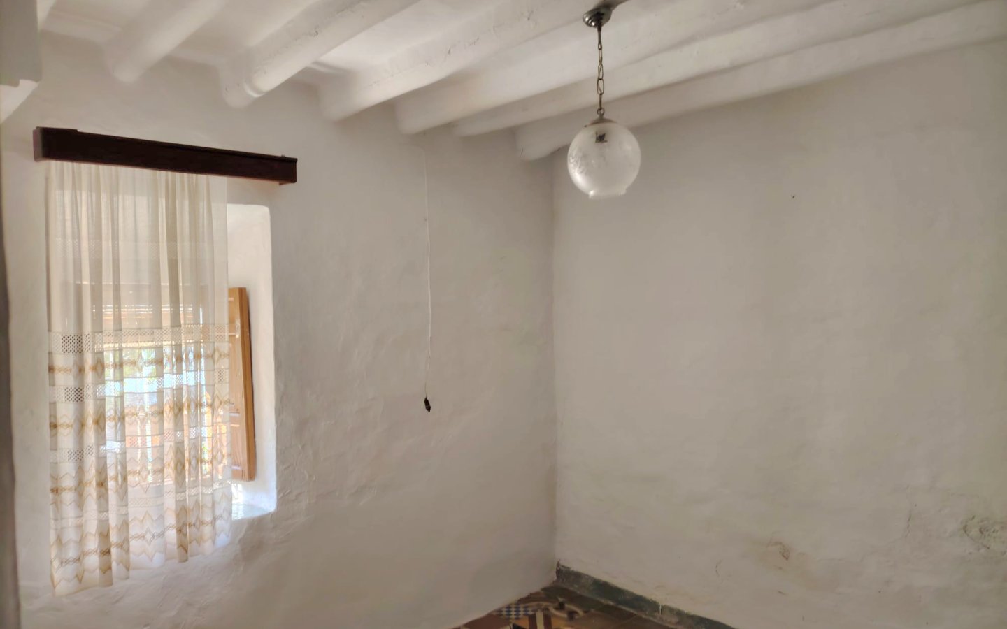 Located in a raised position with access to the side to the raised garden area which could easily be incorporated from the ground floor patio. To the front of the property there is a lovely paved area filled with orange trees which is owned and maintained by the local Town hall. On entering the houses there is a large front facing lounge with some original features including an under stair storage room. To the rear of this room a corridor takes you a large family kitchen in need of updating and modernizing with a fireplace. There is access from the corridor out to the ground floor patio this is a great size and has a quirky rock formation which when painted could be quite a feature. There is a large cave-like storage room in this area too and you can see the raised garden area which could also be easily incorporated into the patio as a raised sun terrace/garden. There is also an outside bathroom in the area again which needs updating however water and waste are there.