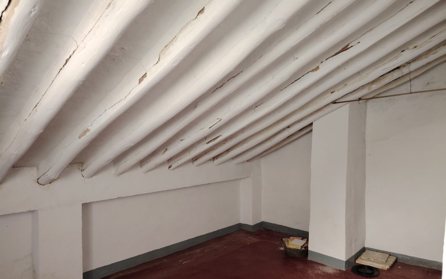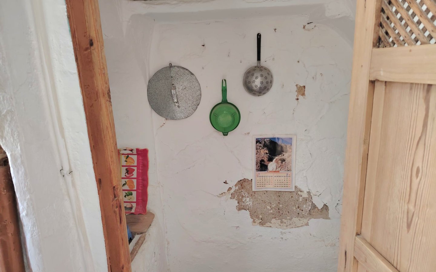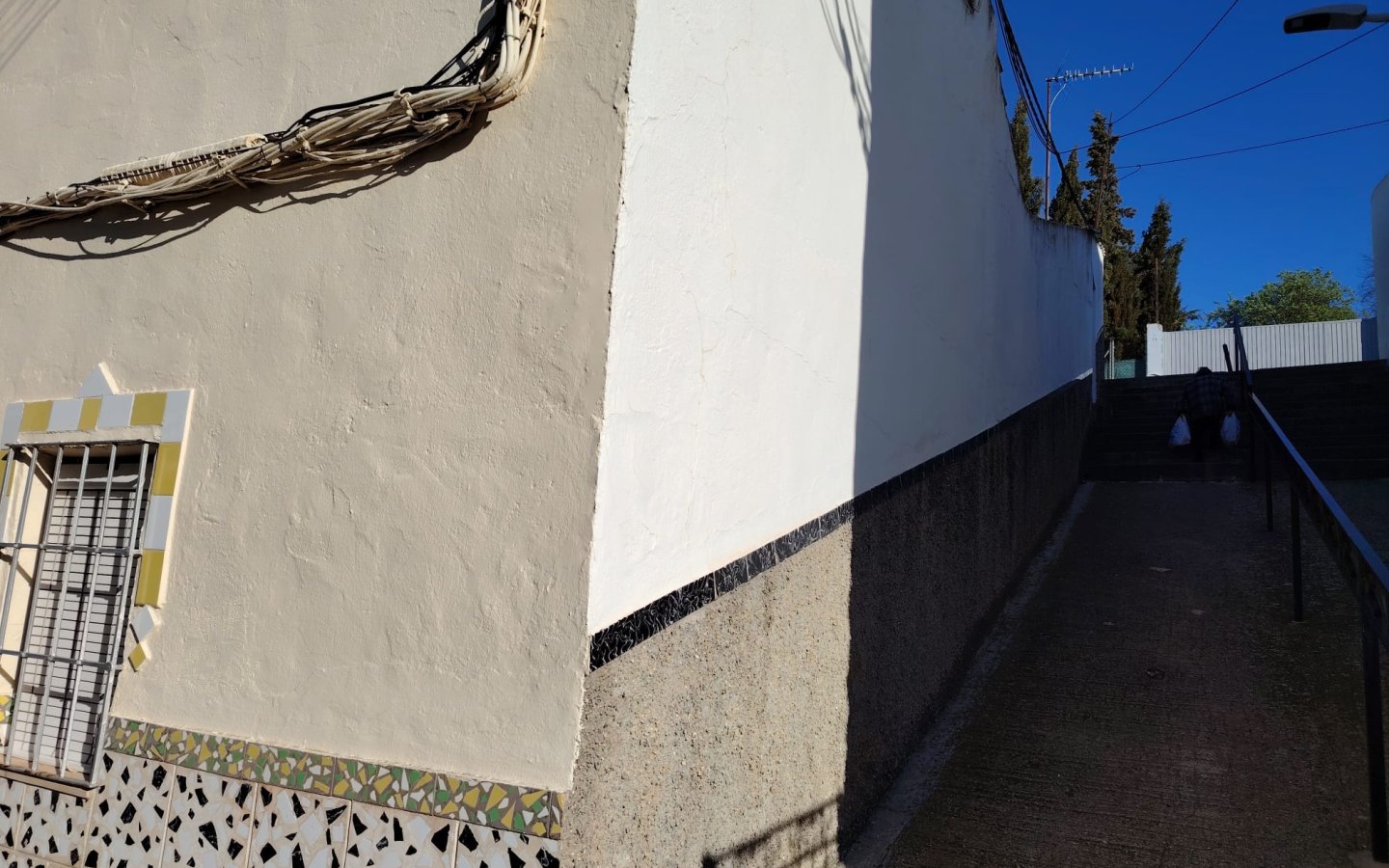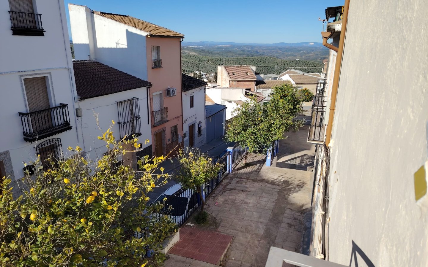 Located in a raised position with access to the side to the raised garden area which could easily be incorporated from the ground floor patio. To the front of the property there is a lovely paved area filled with orange trees which is owned and maintained by the local Town hall. On entering the houses there is a large front facing lounge with some original features including an under stair storage room. To the rear of this room a corridor takes you a large family kitchen in need of updating and modernizing with a fireplace. There is access from the corridor out to the ground floor patio this is a great size and has a quirky rock formation which when painted could be quite a feature. There is a large cave-like storage room in this area too and you can see the raised garden area which could also be easily incorporated into the patio as a raised sun terrace/garden. There is also an outside bathroom in the area again which needs updating however water and waste are there.
