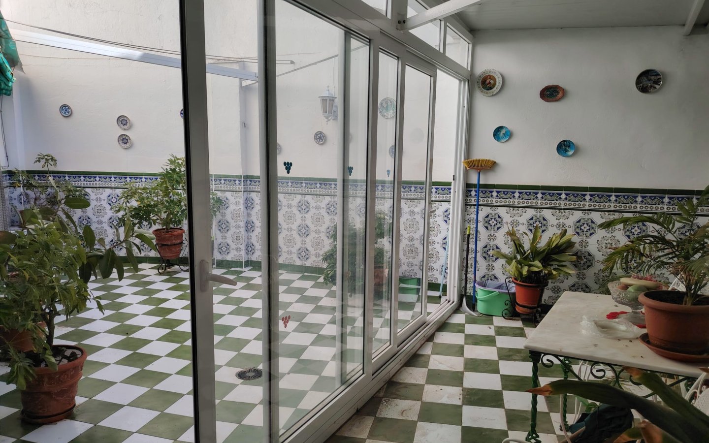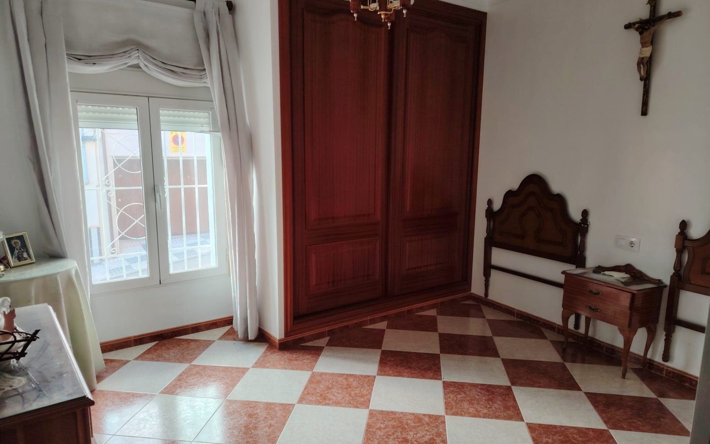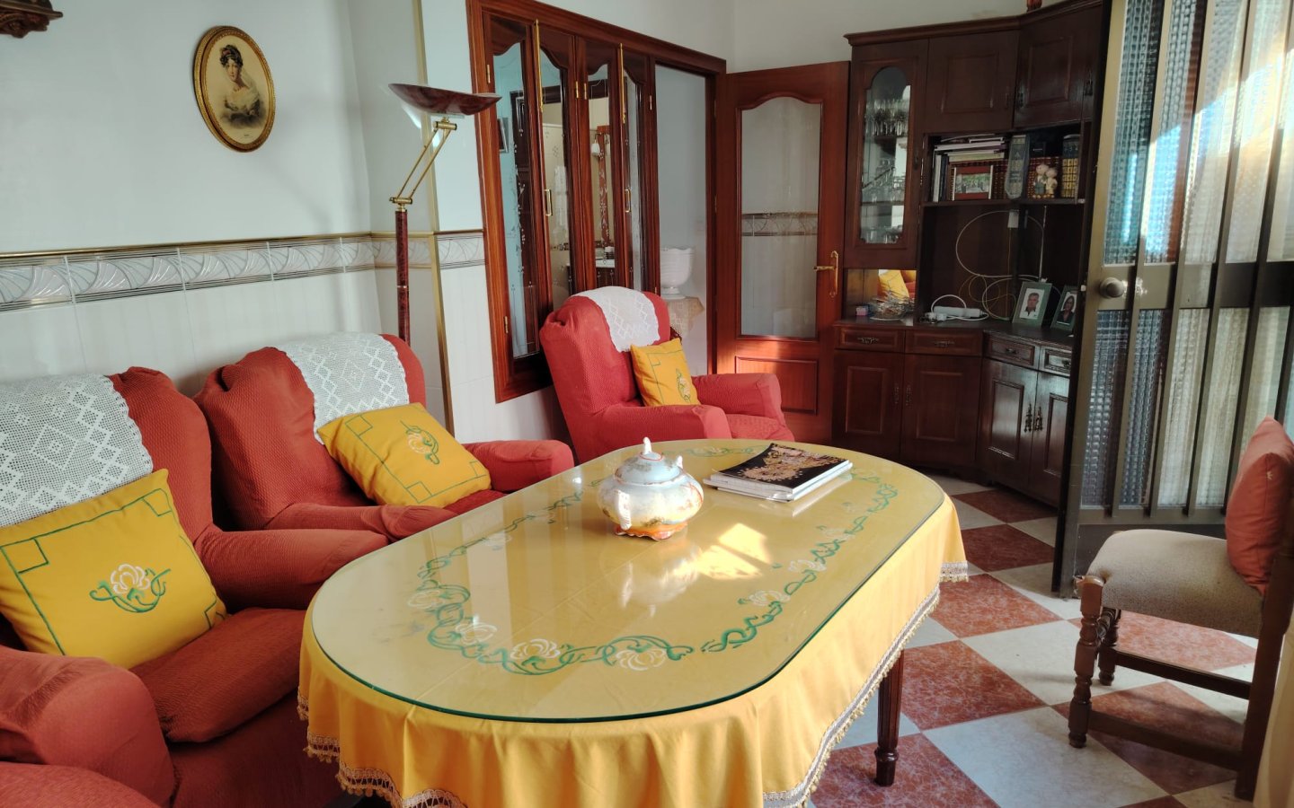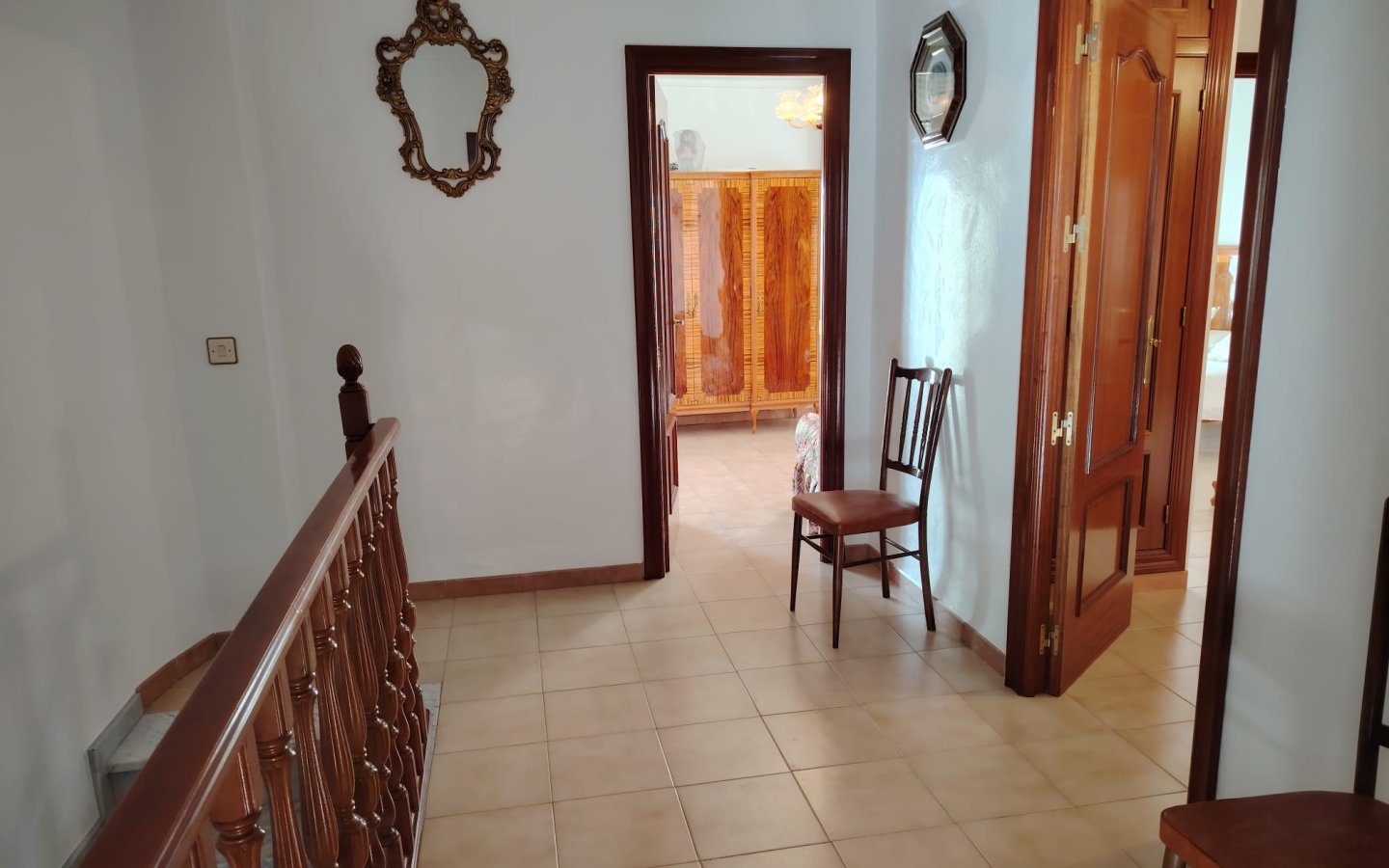Across from the house is a large 50sqm garage with a rear 40sqm storage area with water and electric ideal in a Town where parking can often be limited. On entering the property there is a typical tiled entrance hall with stairs leading up into a reception area. To the front there is a large double bedroom with fitted wardrobes and an ensuite bathroom. Which can also be accessed independently from the reception room. To the rear there is a good sized family lounge/ dining room with access into the bright and modern kitchen which is fully fitted with modern appliances. There is access from here to a large private courtyard with a lovely orange and lemon tree, the first part of which is covered and leads to a very large utility room with three further rooms behind. In this area there is also a shower room with wc and sink. Some steps lead up to a raised sun terrace which currently has a metal roof however that can be easily removed if desired. There is also a room off the courtyard which houses the central heating tank.