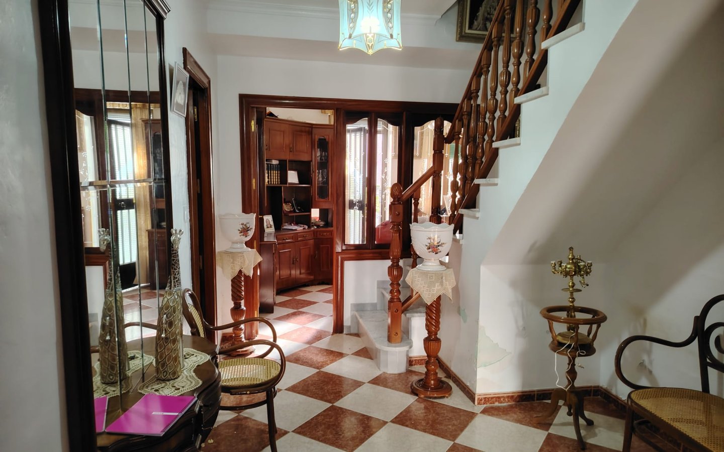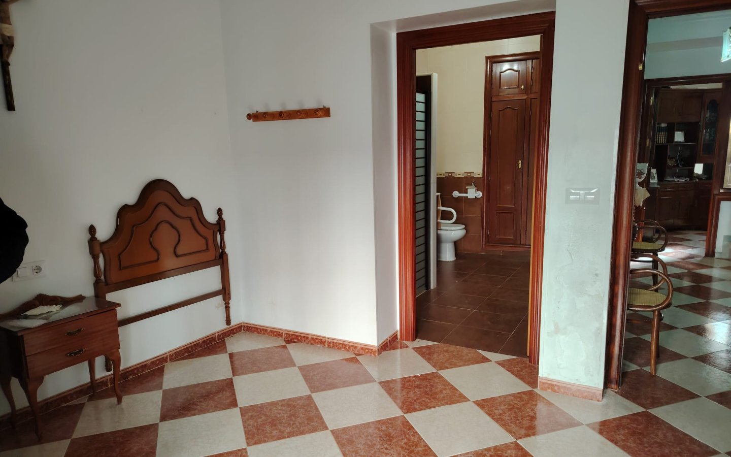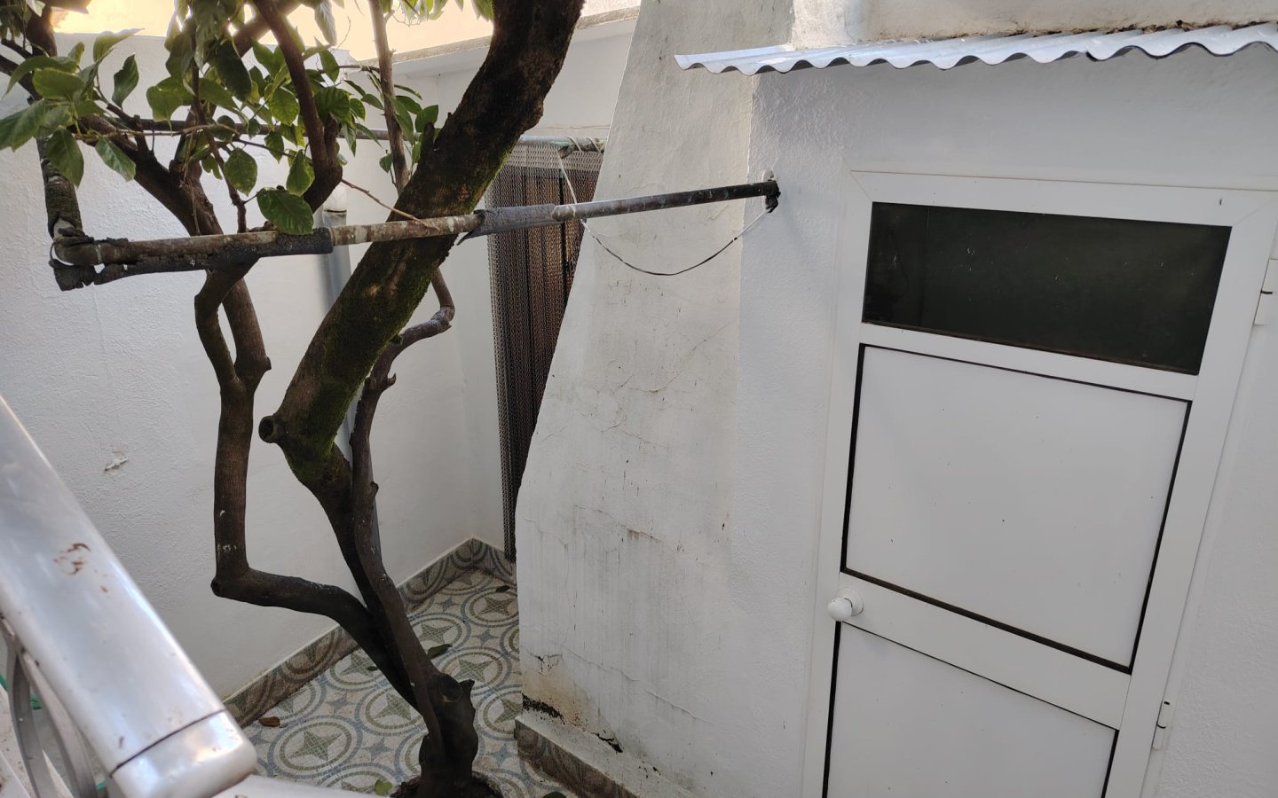 Across from the house is a large 50sqm garage with a rear 40sqm storage area with water and electric ideal in a Town where parking can often be limited. On entering the property there is a typical tiled entrance hall with stairs leading up into a reception area. To the front there is a large double bedroom with fitted wardrobes and an ensuite bathroom. Which can also be accessed independently from the reception room. To the rear there is a good sized family lounge/ dining room with access into the bright and modern kitchen which is fully fitted with modern appliances. There is access from here to a large private courtyard with a lovely orange and lemon tree, the first part of which is covered and leads to a very large utility room with three further rooms behind. In this area there is also a shower room with wc and sink. Some steps lead up to a raised sun terrace which currently has a metal roof however that can be easily removed if desired. There is also a room off the courtyard which houses the central heating tank.