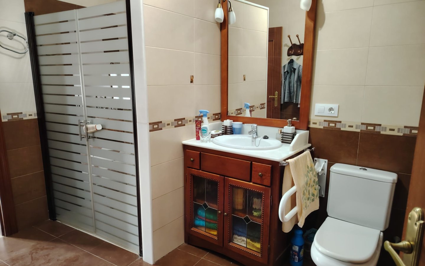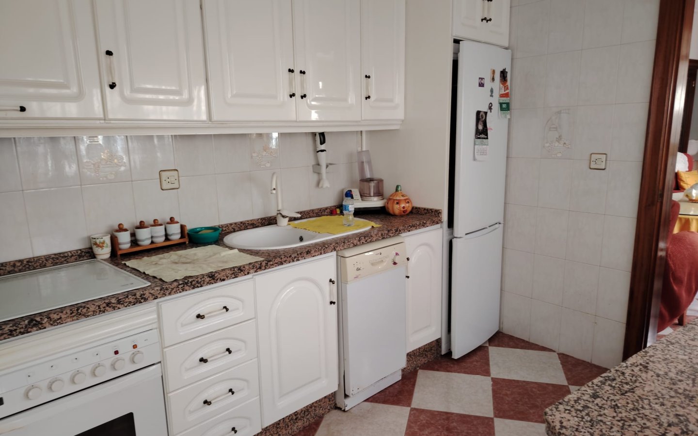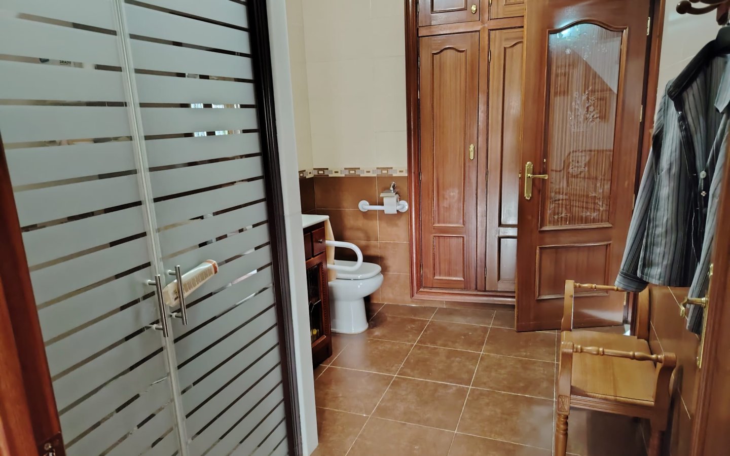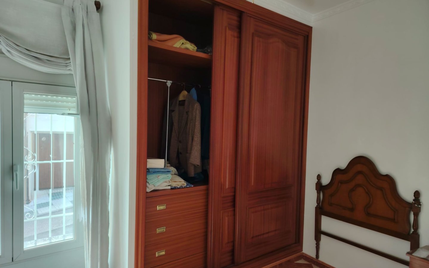 Across from the house is a large 50sqm garage with a rear 40sqm storage area with water and electric ideal in a Town where parking can often be limited. On entering the property there is a typical tiled entrance hall with stairs leading up into a reception area. To the front there is a large double bedroom with fitted wardrobes and an ensuite bathroom. Which can also be accessed independently from the reception room. To the rear there is a good sized family lounge/ dining room with access into the bright and modern kitchen which is fully fitted with modern appliances. There is access from here to a large private courtyard with a lovely orange and lemon tree, the first part of which is covered and leads to a very large utility room with three further rooms behind. In this area there is also a shower room with wc and sink. Some steps lead up to a raised sun terrace which currently has a metal roof however that can be easily removed if desired. There is also a room off the courtyard which houses the central heating tank.