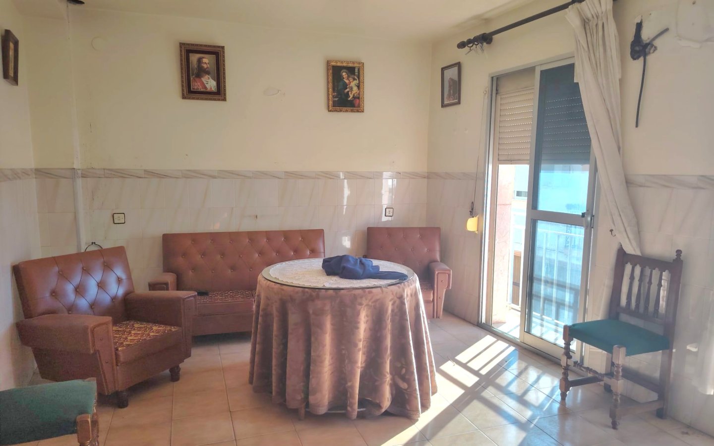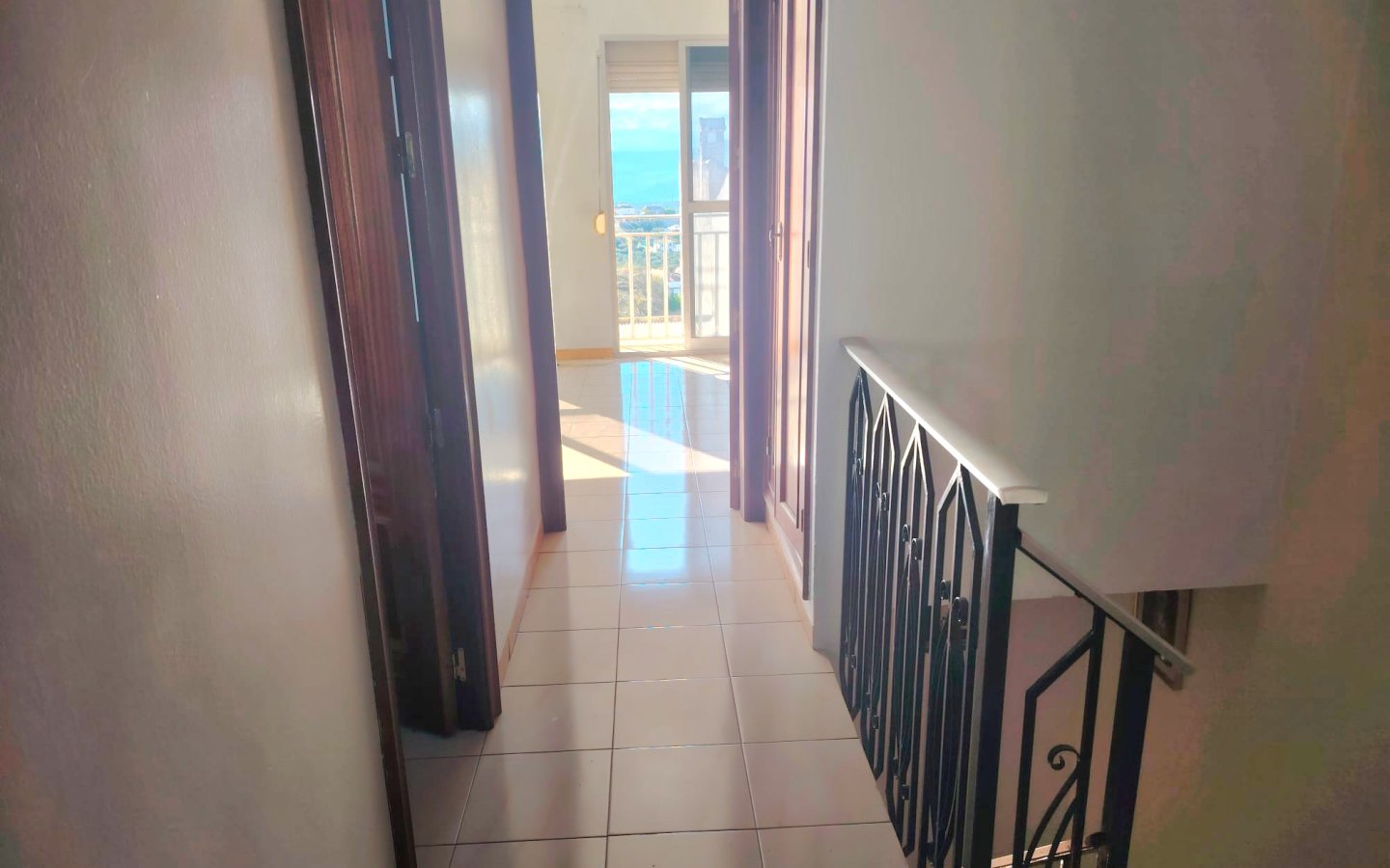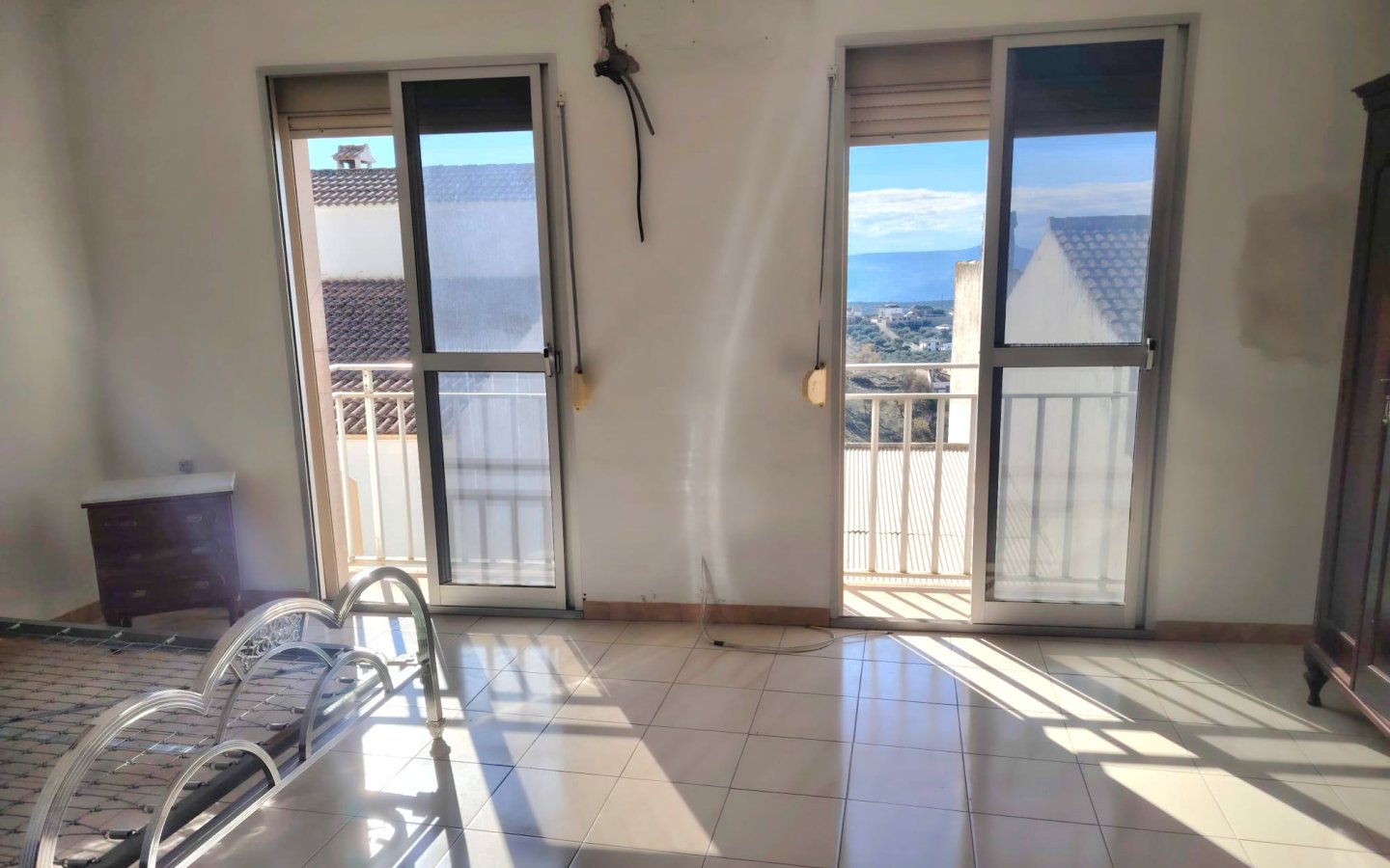 There is an entrance hall with marble stairs leading up to the main entrance where there is a reception area, a bedroom and access to the rear tiled patio. There is a shower room, in need of some updating, stairs then lead up to a utility room. The reception area then leads on to a kitchen a good size however in need of modernising. To the front there is then a good sized family lounge with two Juliette balconies. A marble staircase then leads to the second floor of the property where there is a landing area. Off it is a family bathroom in need of a little modernising. It has a bath with an overhead shower, sink, wc and bidet. Also on this floor there are two large bedrooms then on the landing built in storage and a large master bedroom again with two Juliette balconies.