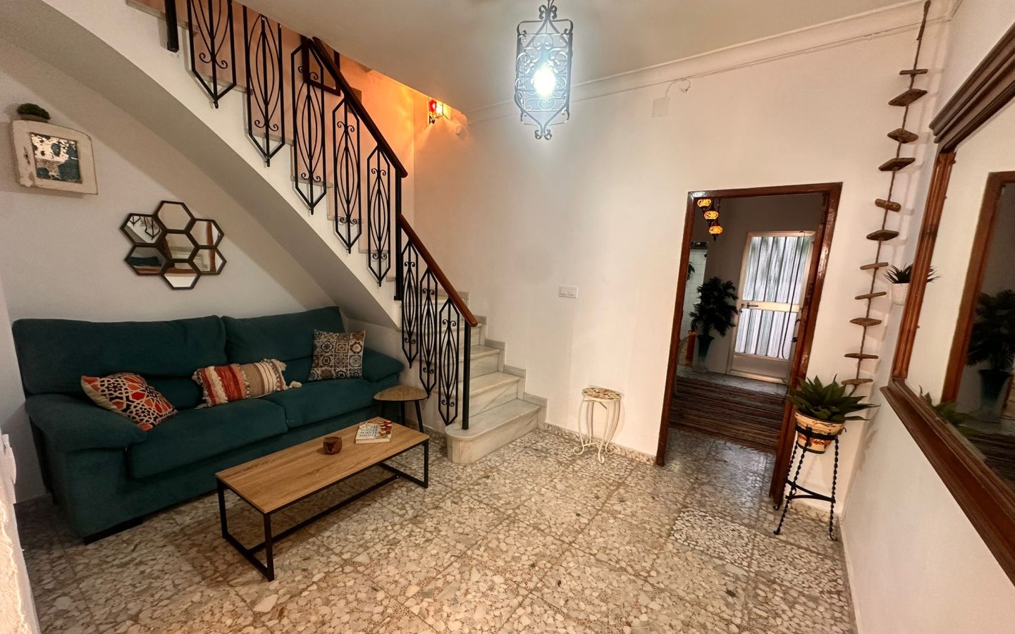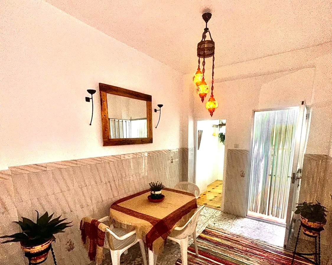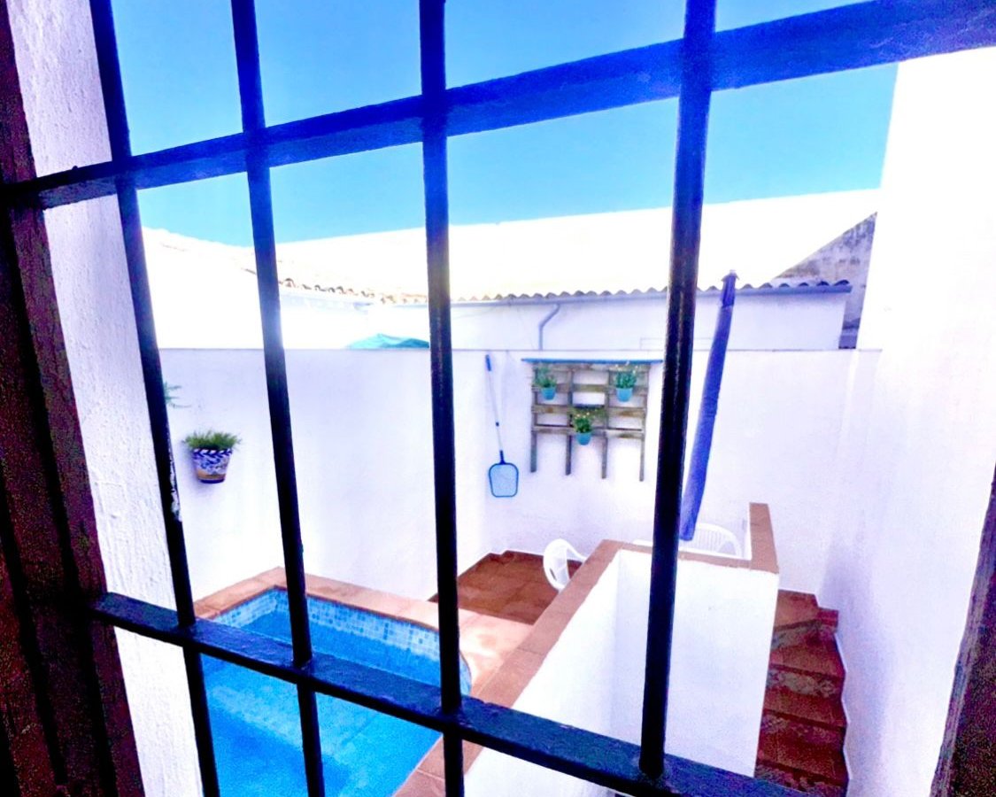 Located in the lower end of this busy Town in a quiet spot the amenities are just a few minutes walk away. There is a traditional entrance hall leading through to a grander reception area. Off this and front facing there is a downstairs front facing bedroom which has also been a lounge. To the rear of the large reception area there is a good sized family dining room which then leads through to a kitchen which has all you need. There is then access to the rear patio which at the rear has a new modern family shower room consisting of a wc, sink and large walk-in shower. Beautiful tiled steps then lead up to a lovely private and sunny raised terrace with an area for dining Al fresco and also which hosts the splash pool- ideal for cooling off during the long hot Andalucian Summers.