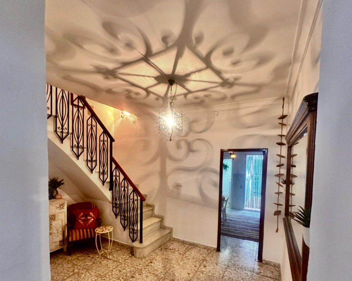 Inside the house a sweeping marble staircase leads up to the first floor where there is a large landing area and to the front is a large double bedroom with a Juliette balcony. Then to the rear a second large double bedroom with original beams. A second staircase then leads up to the second floor where there is a very large fourth bedroom ( currently used as a lounge area) with access to another private raised terrace