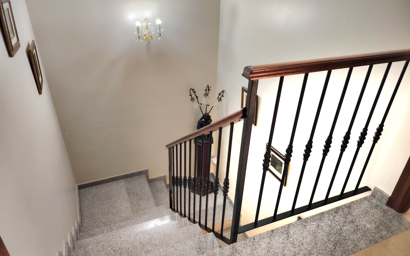 Stairs from the hallway then lead up to the first floor where there is a large spacious landing area. There is a large double front facing bedroom with a Juliette balcony. To the rear is another good size bedroom currently with bunk beds, then a third large front facing bedroom with a Juliette balcony. Also on this level there is a large family bathroom with a full bath, overhead shower, wc, bidet and wash basin. There is also access to a large utility room with access to a rear raised sun terrace.