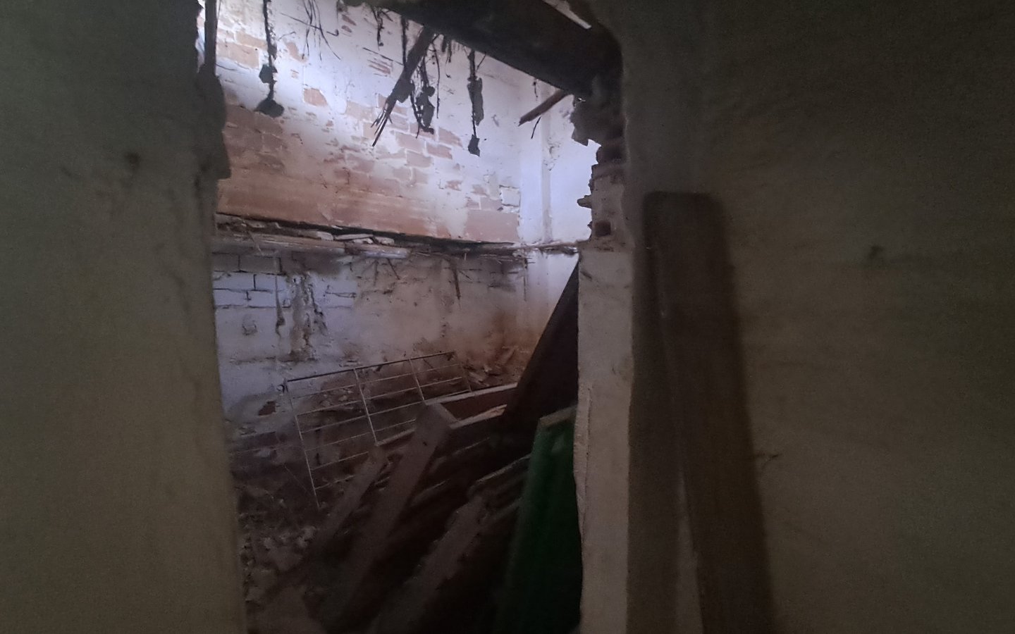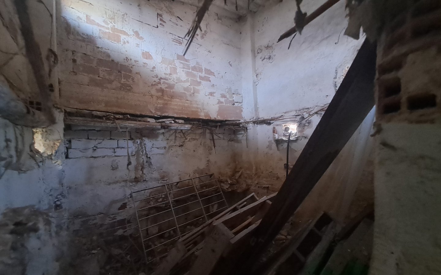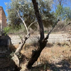 Further along the hallway a corridor leads down to the left is a good sized storage room then on to an enclosed courtyard with water and waste and to the right of this is a bathroom with a bath, wc sink and bidet in need of updating. The internal courtyard then leads further back to a two storey room which has had the floor removed and made into a single story ideal for more accommodation. There is then access to the open rear courtyard that is a good size and very private. There is then a doorway leading out to the garden ( currently overgrown) with a retaining wall and the basics for a raised sun terrace- this area is 93.65smq and looks out to the rear olive groves.
