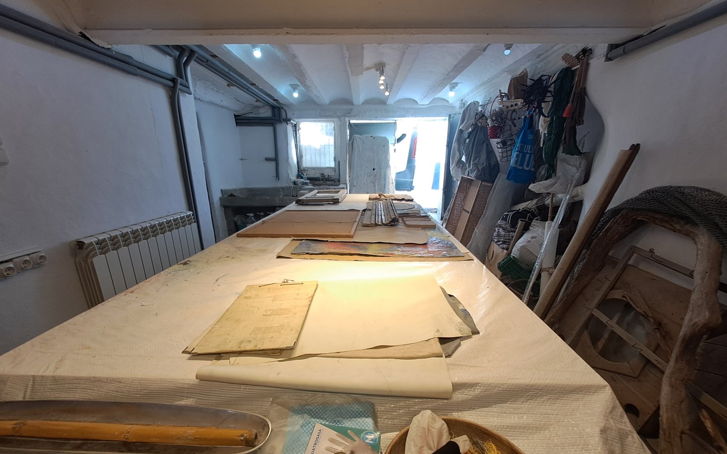 Access from the kitchen leads down into a huge garage and workshop area with access to the street to the right of the property that is currently being used as a studio by the owners.