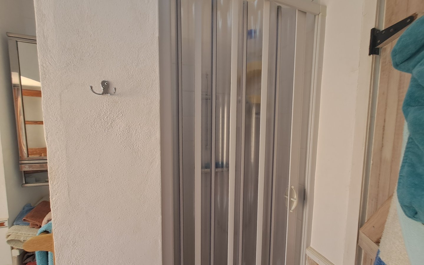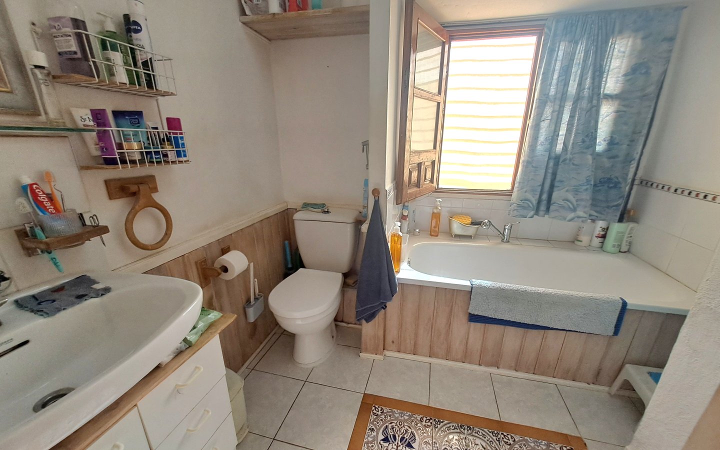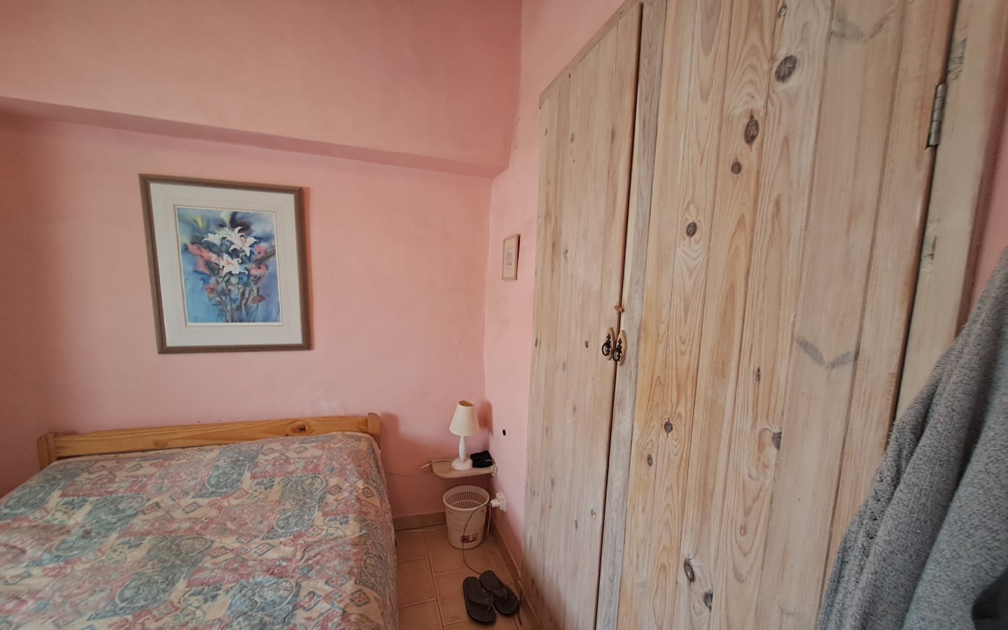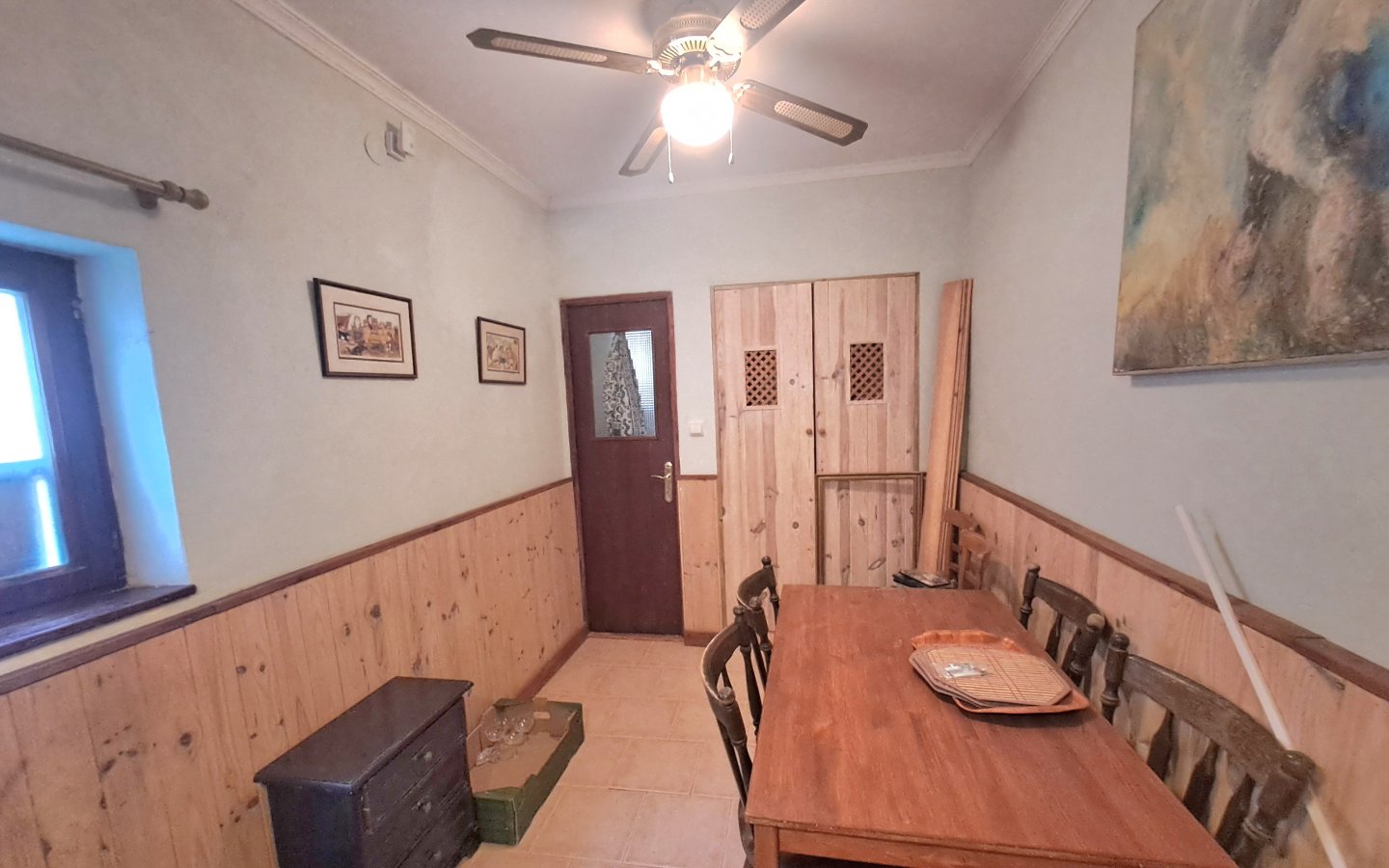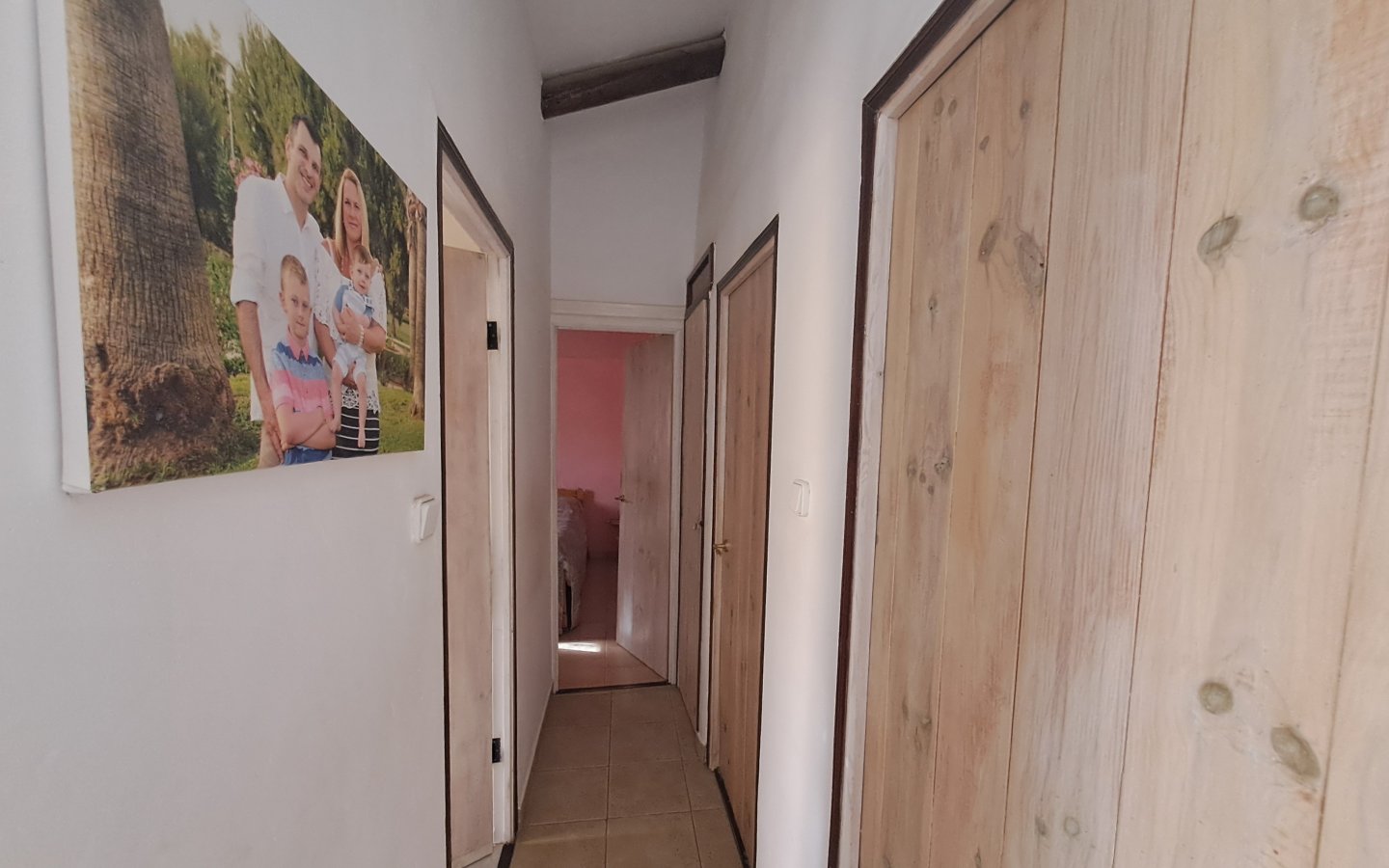 A staircase in this area leads to the first floor where there is a bright landing and hallway that leads to a front facing double bedroom ( currently set out as a twin) It has traditional beams on the ceiling, a ceiling fan and a built-in wardrobe. There is then a large rear facing family bathroom with a full bath, walk in shower, sink with a vanity unit, large walk in shower with a seat and wc with a handheld bidet. On this level there is also a huge master bedroom which is front facing with two windows, ceiling fan, beamed ceilings and wooden built-in wardrobes. There is then another double bedroom which is rear facing with a ceiling fan, beamed ceilings and built-in wardrobes. From the landing area there is access to a good sized raised terrace overlooking the courtyard. There are steps here too that lead down to the courtyard. This area also benefits from having a storage cupboard.