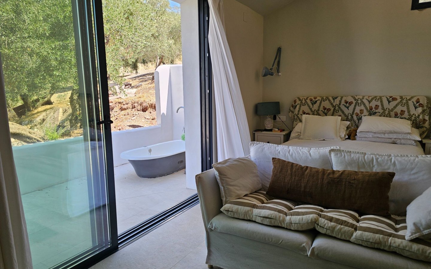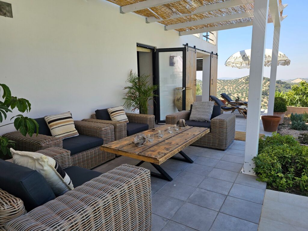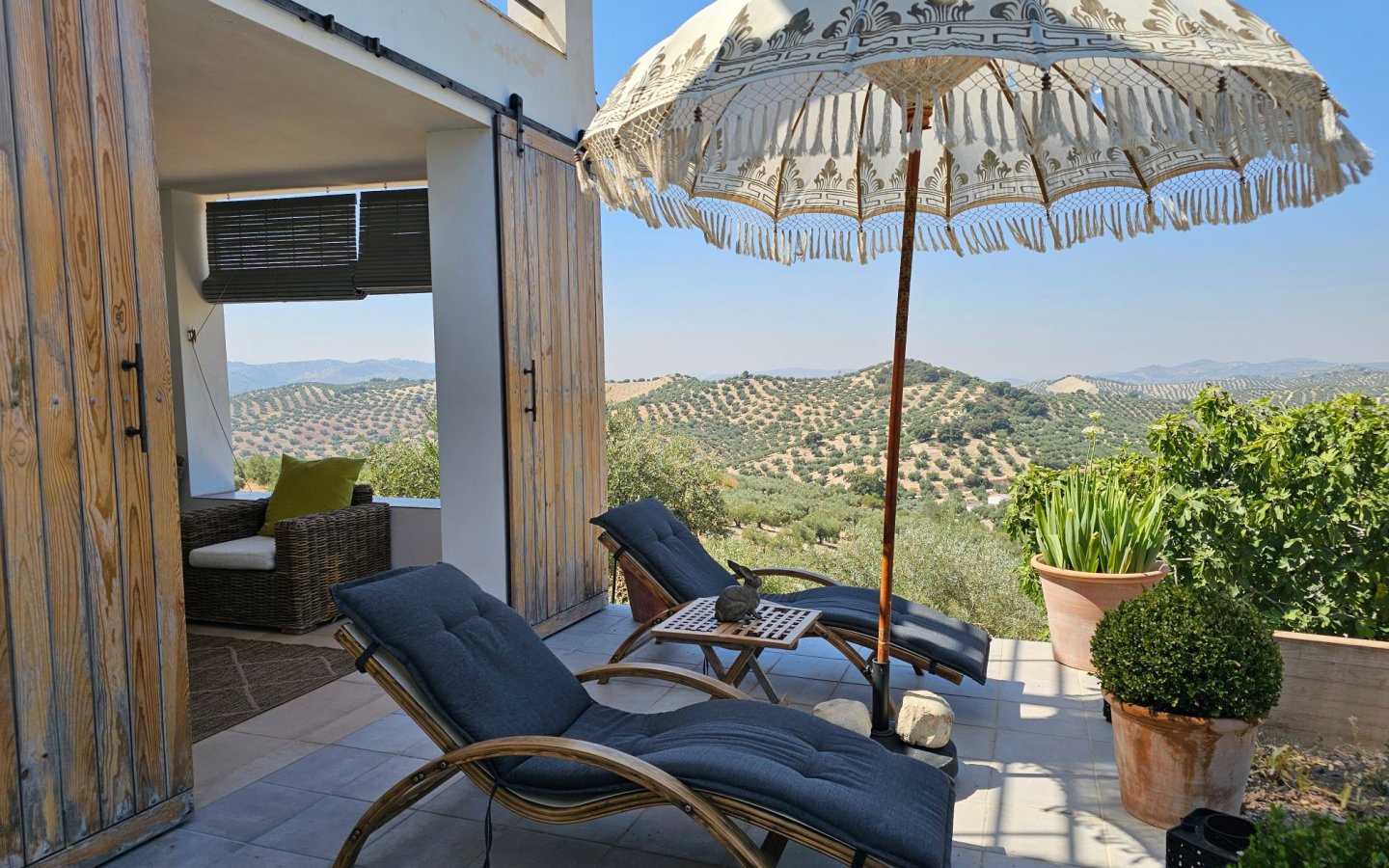 This lovely cortijo is nestled on top of a hill, overlooking the olive groves as far as you can see. It has been renovated extremely well and with lots of taste, preserving the authentic features and floors. There are several terraces around the house where you can sit in the refreshing shade of the old oak trees or enjoy the sun, each time with a unique view.