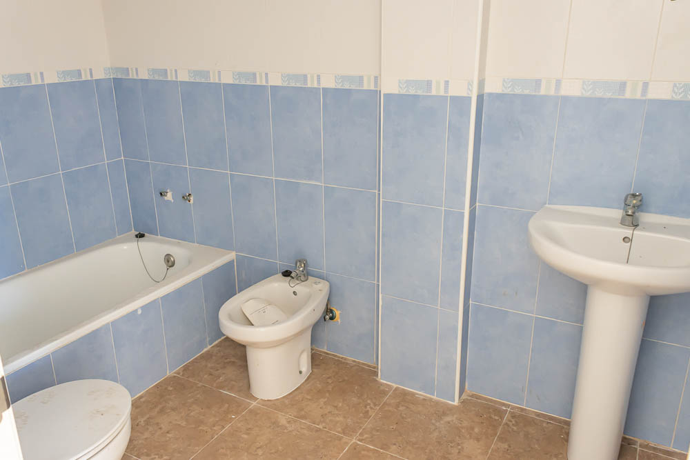 A spacious built-in wardrobe in the hallway provides excellent storage. Both bedrooms are double; the master bedroom also features a small dressing room—an extra touch of comfort not always found in similar properties. The bathroom is generously sized and includes a bathtub, ideal for unwinding after a sunny day on the coast.