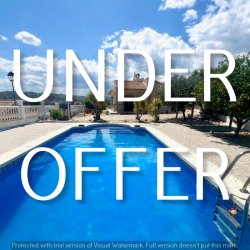 Located within a 10 to 15 minute walk of the village, supermarket and a variety of cafe bars, tapas bars and restaurants, this villa occupies a prime position at the top of a cul de sac. A fully walled plot of 676m with double entrance gates leading into a long driveway with sufficient space to park several cars and a motor home if required. From its elevated position the property enjoys complete privacy and fantastic 360 degree country and mountain views. As you enter the double gates, to the right is the 8×4 swimming pool and surrounded by an ample terrace for soaking up the sun's rays. There is a covered pagoda for shaded seating from which to sit and enjoy the spectacular views. Here is also a very useful storage casita which could quite easily and inexpensively be altered to be a poolside bar and/or outside kitchen if desired. The gardens are low maintenance with established fruit trees and shrubs and there is lots of scope for further landscaping and creating seating areas in different parts of the gardens. Currently there is a covered terrace to the front of the villa from which to enjoy alfresco shaded dining and those views and a seating area to the rear, an ideal spot to sit and watch the beautiful sunsets behind the mountains. The villa has 122m of living space and is separated into 2 bedrooms with ensuites in the main house and a separate guest annexe with ensuite. Access to the villa is via the front door into an entrance hallway. This gives access to a good size fully fitted kitchen with granite worktops and space for a small breakfast table if required. A single partially glazed door then leads through to a very spacious lounge and dining room with a central log burning fireplace, This has double doors leading out to the covered front terrace. Off here are the two main house bedrooms, both good size doubles with fitted wardrobes and both with en suites. One has an en suite shower and the other both a shower and a bath. To the side of the villa the annexe has its own entrance into a small vestibule which currently houses the washing machine, a shower room and then a very spacious bedroom, sitting room with double doors leading out to the rear and with fabulous views. The villa is extremely light and airy and benefits from ceiling fans, fly screens on all windows and doors and Rejas.There is also free wifi internet connected.
